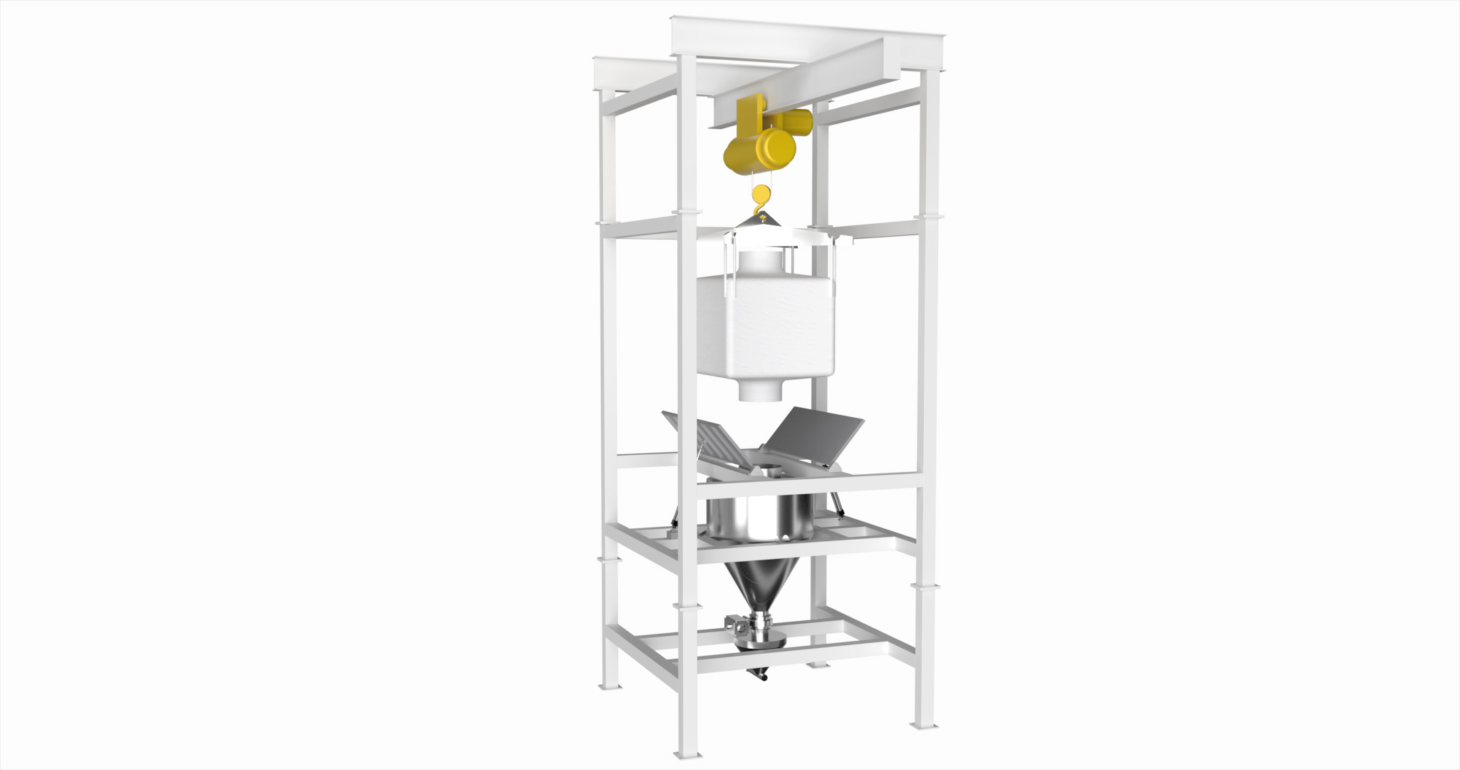 噸袋開袋站特為噸袋物料輸送,可實現(xiàn)無塵,高效,自動化放料。可用于制藥,食品,化工,新能源等行業(yè),支持非標定制。配合我司真空上料產(chǎn)品,可做無塵自動化輸送系統(tǒng)。其工作原理為:利用電動葫蘆等提升裝置,將噸袋提升到放料口上方,人工將下料口打開,物料流入下料口內(nèi),并配合放料裝置或真空輸送裝置,將物料輸送至目標料位。